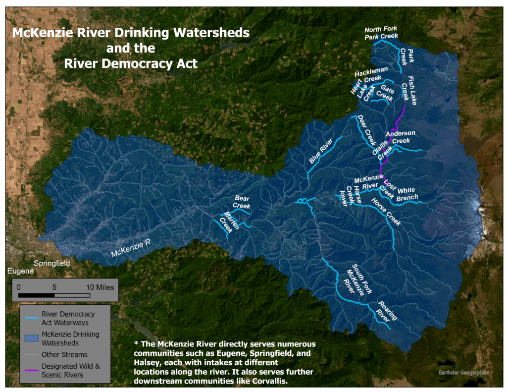 Streams in the watershed proposed for protection include the 15 miles of the mainstem McKenzie River, the South Fork McKenzie River, Blue River, Horse Creek, Lost Creek, Deer Creek, Olallie Creek, and Anderson Creek.