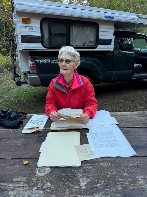 Marilyn has saved a lot of files from her days as an activist. Before our walk, Marilyn handed me a 1980 MEOW brochure with the headline in all caps, “Save the North Fork of the Umatilla From Being Logged.” Then, the Forest Service had denied Wilderness Study status, and instead tallied a potential 135 million board feet they could log from 10,000 acres—much of it steep with sensitive soils. Timber sales were in the works.