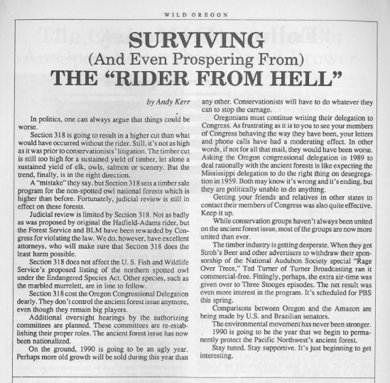 Those were the opening words of the January-February 1981 Oregon Wild newsletter. Ronald Reagan had just defeated Jimmy Carter, Republicans had taken the Senate for the first time in two decades, and the new power brokers aligned with anti-public lands extremists known as the Sagebrush Rebellion. To put it bluntly, shit did not look good.