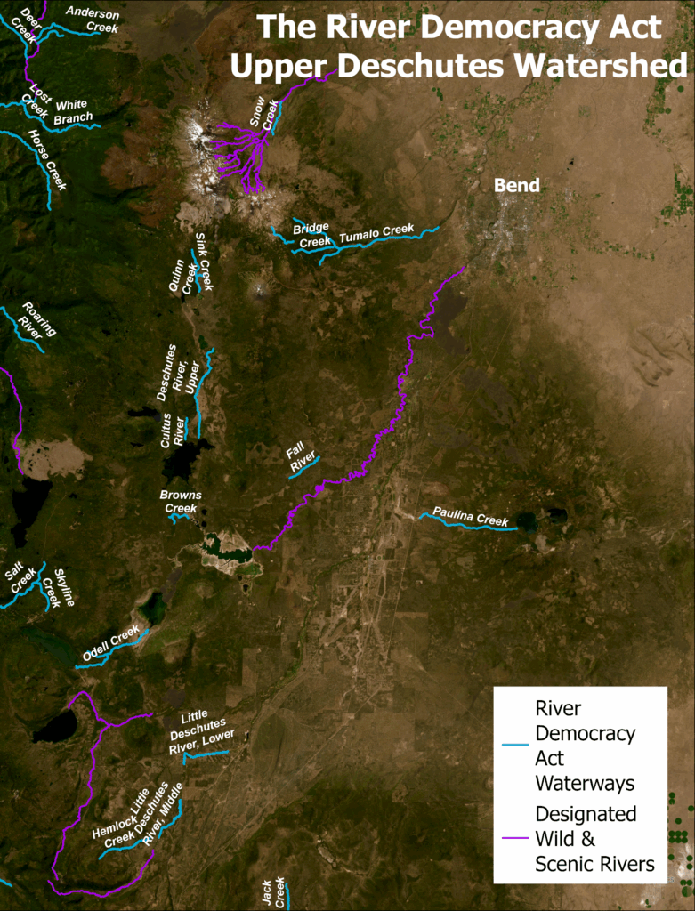 The River Democracy Act, co-sponsored by Senators Ron Wyden and Jeff Merkley, would designate the headwaters of the upper Deschutes River and other important tributaries in the watershed as Wild & Scenic Rivers, providing additional safeguards for water quality, fish and wildlife habitat, and outdoor recreation opportunities.