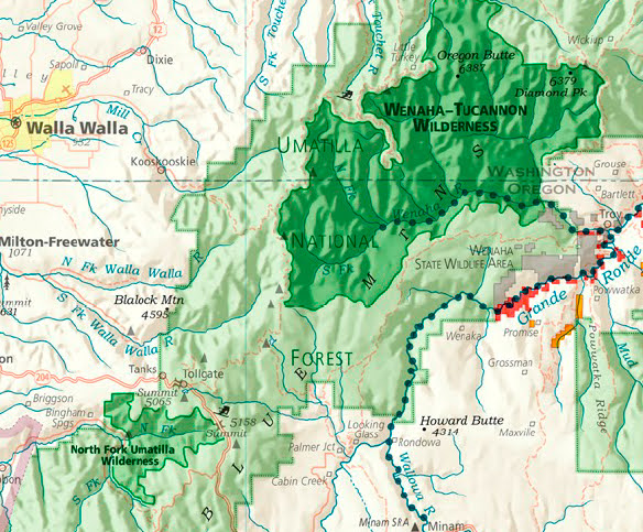 But climate change? The term was absent in 1984. Today, this verdant canyon and forests form vital climate refugia, buffering extreme weather and offering cooler realms as global temperatures rise to dangerous levels. Wildlife and even plants are on the move northward and to higher elevations—if there are ecologically intact corridors available. The North Fork Umatilla Wilderness anchors several migration routes, including a key corridor north to the Wenaha-Tucannon Wilderness (177,737 acres designated in 1978). Wide-ranging animals, including wolves, elk, and cougars, traverse the linkages in multiple directions.